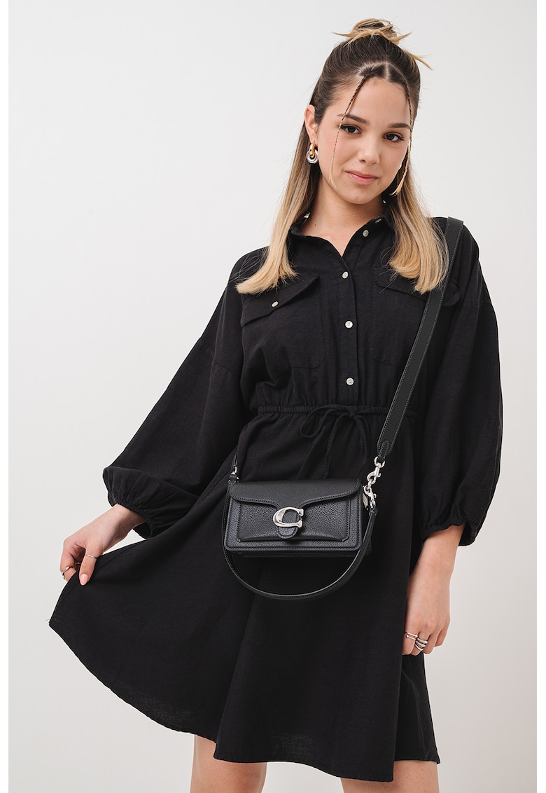 - in Imprimeu: uni Croiala: evazat Lungime: scurta Decolteu: cu guler Guler: ascutit Maneci: bufante Lungime maneca: maneca trei sferturi Talie: ajustabila Buzunare: 2 cu clapa si nasturi pe piept Sistem inchidere: nasturi Compozitie Exterior: 50% viscoza lenzing™ecovero™