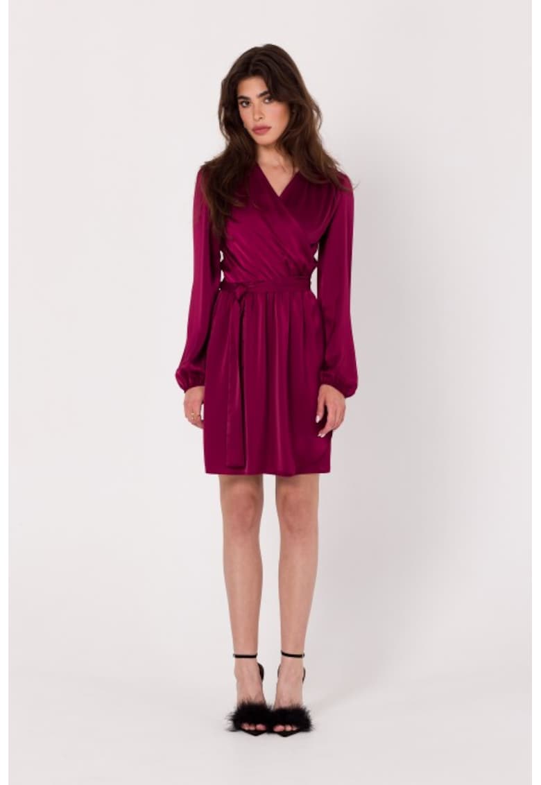 - elastan Imprimeu: uni Croiala: evazat Lungime: scurta Decolteu: cache-coeur Lungime maneca: maneca lunga Detalii: produs in europa Compozitie Exterior: 98% poliester