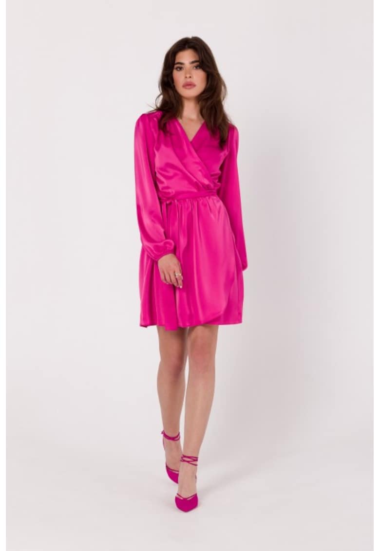 - elastan Imprimeu: uni Croiala: evazat Lungime: scurta Decolteu: cache-coeur Lungime maneca: maneca lunga Detalii: produs in europa Compozitie Exterior: 98% poliester