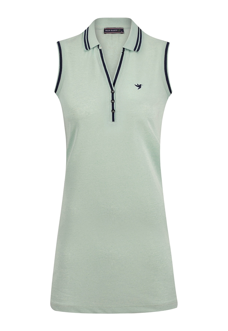 - bumbac Imprimeu: uni Croiala: dreapta Lungime: scurta Guler: clasic Lungime maneca: fara maneca Detalii: contrastante