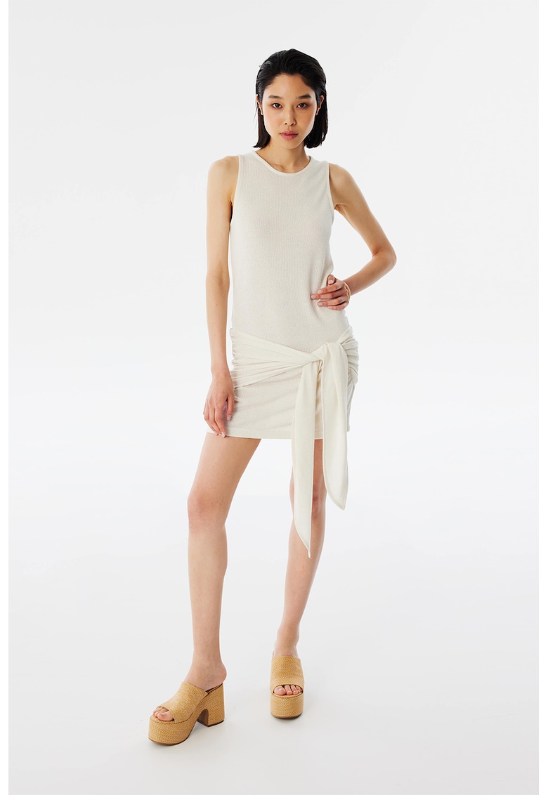 - viscoza Imprimeu: uni Croiala: bodycon Lungime: scurta Decolteu: la baza gatului Lungime maneca: fara maneca Sistem inchidere: fara inchidere Compozitie Exterior: 66% viscoza
