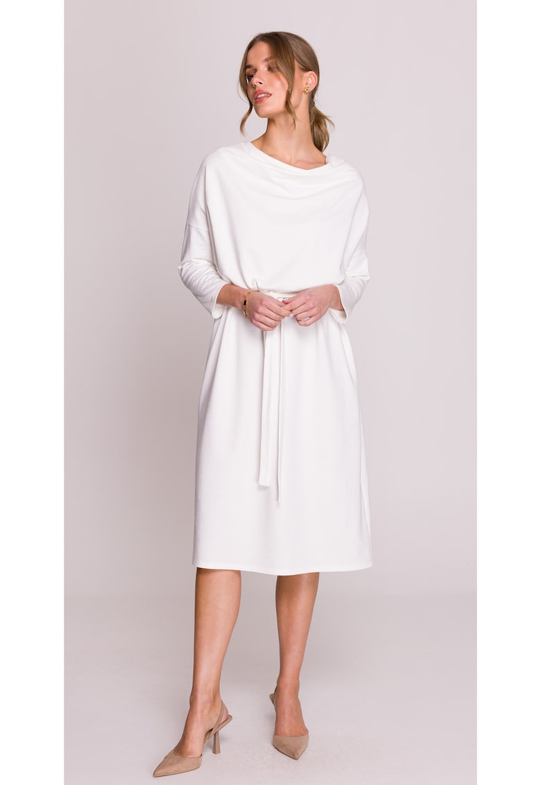 - modal Imprimeu: uni Croiala: evazat Lungime: midi Decolteu: rotund Lungime maneca: maneca trei sferturi Detalii: produs in europa Compozitie Exterior: 65% modal