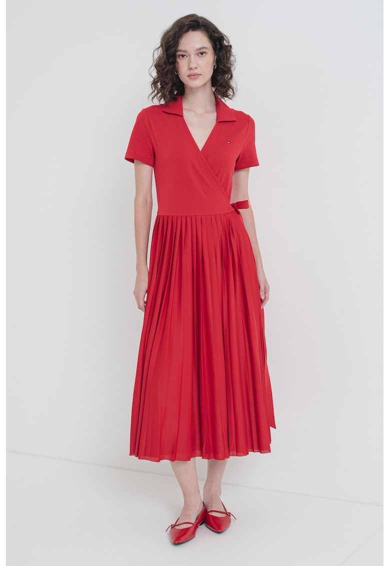 Caracteristici Culoare: rosu Stil: casual Material: poliester Imprimeu: uni Croiala: petrecuta Lungime: midi Guler: ascutit