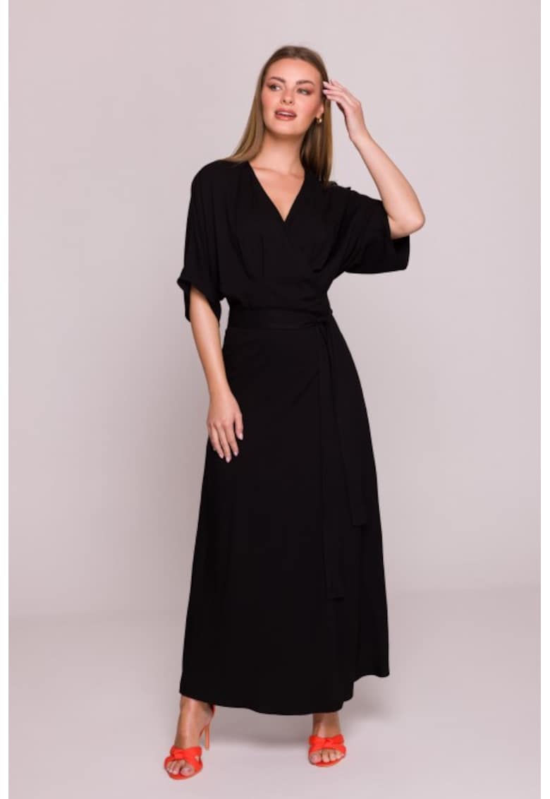 - elegant Material: viscoza Imprimeu: uni Croiala: lejer Lungime: lunga Decolteu: in v Lungime maneca: maneca medie Talie: cu cordon Detalii: produs in europa Compozitie Exterior: 100% viscoza Captuseala: 100% viscoza Material garnituri: 100% viscoza
