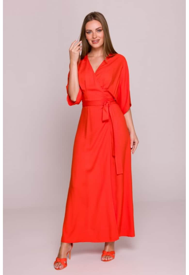 - elegant Material: viscoza Imprimeu: uni Croiala: lejer Lungime: lunga Decolteu: in v Lungime maneca: maneca medie Talie: cu cordon Detalii: produs in europa Compozitie Exterior: 100% viscoza Captuseala: 100% viscoza Material garnituri: 100% viscoza