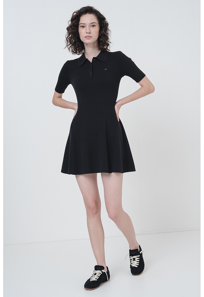 Caracteristici Culoare: negru Stil: casual Material: bumbac Imprimeu: uni Croiala: evazat Lungime: scurta Guler: polo Lungime maneca: maneca scurta Detalii: fenta scurta cu nasturi