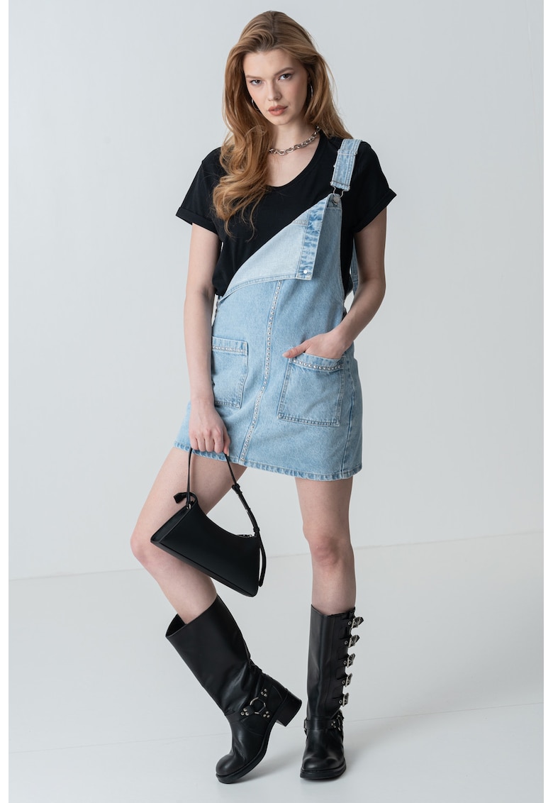 - denim Imprimeu: uni Croiala: in a Lungime: scurta Decolteu: drept Lungime maneca: fara maneca Compozitie Exterior: 100% bumbac Info model Modelul poarta un produs de marimea S. Marimi model: 176 cm inaltime