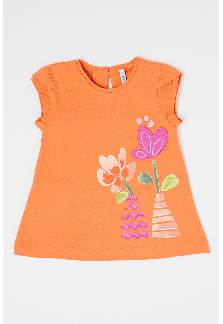 Caracteristici Culoare: portocaliu deschis Stil: casual Material: bumbac Imprimeu: floral Croiala: in a Lungime maneca: maneca scurta Stil decolteu: la baza gatului Sistem inchidere: fara inchidere Colectie: primavara