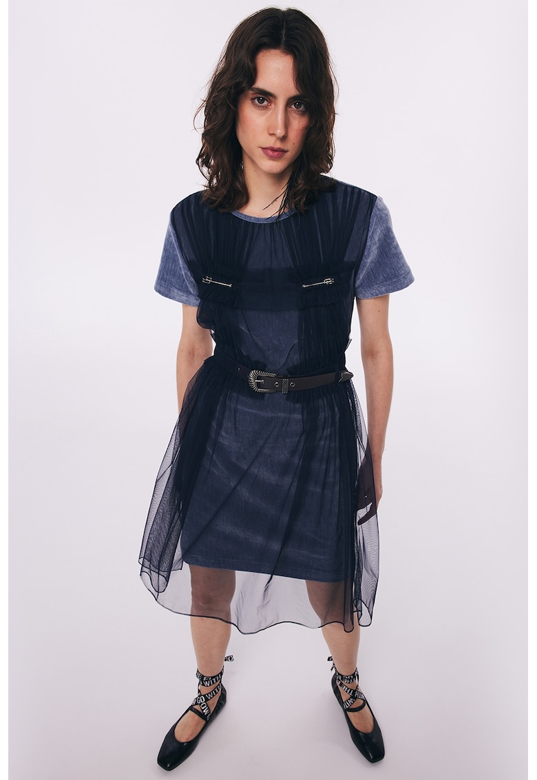 Caracteristici Culoare: albastru inchis Stil: casual Material: poliester Imprimeu: uni Croiala: cambrata Lungime: scurta Decolteu: decolteu la baza gatului Lungime maneca: maneca scurta Sistem inchidere: fermoar Compozitie Exterior: 95% poliester