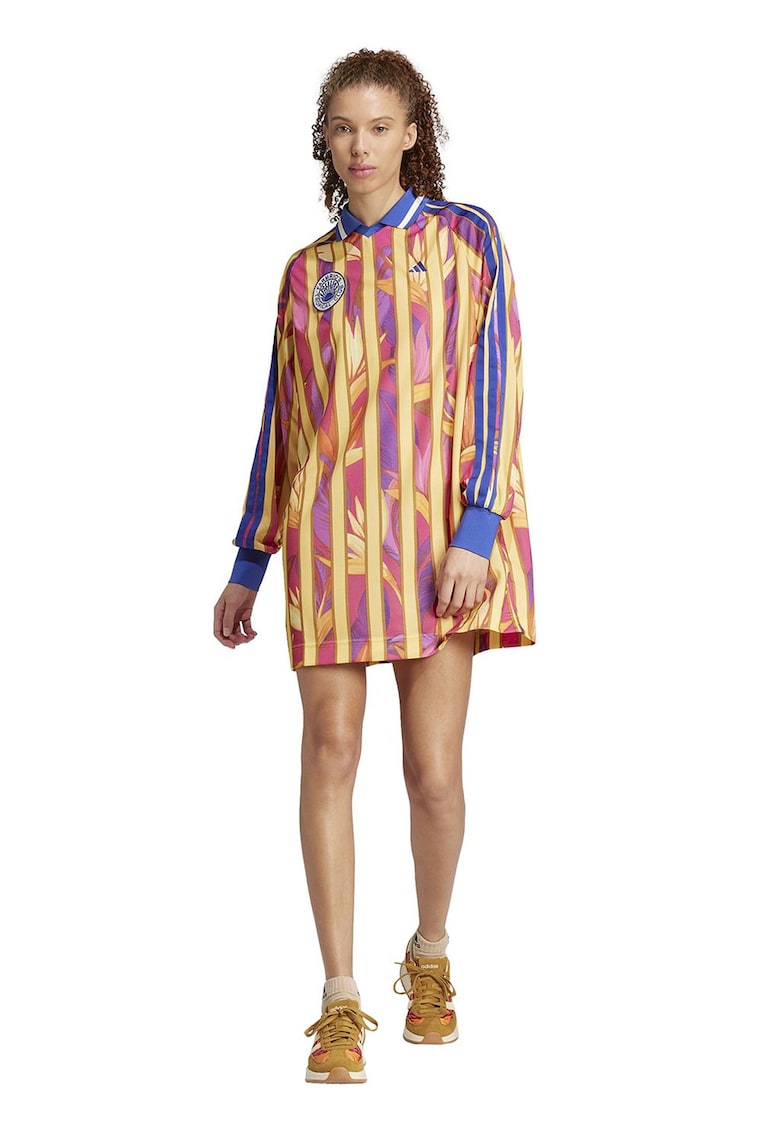Caracteristici Culoare: multicolor Stil: casual Material: sintetic Imprimeu: tropical Croiala: dreapta Lungime: scurta Guler: ascutit Lungime maneca: maneca lunga Sistem inchidere: fara inchidere Linie Brand: adidas x farm rio Compozitie Exterior: 100% poliester reciclat