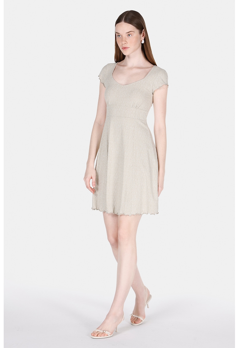 - viscoza Imprimeu: buline Croiala: evazat Lungime: scurta Decolteu: in v Lungime maneca: maneca scurta Sistem inchidere: fara inchidere Compozitie Exterior: 94% viscoza
