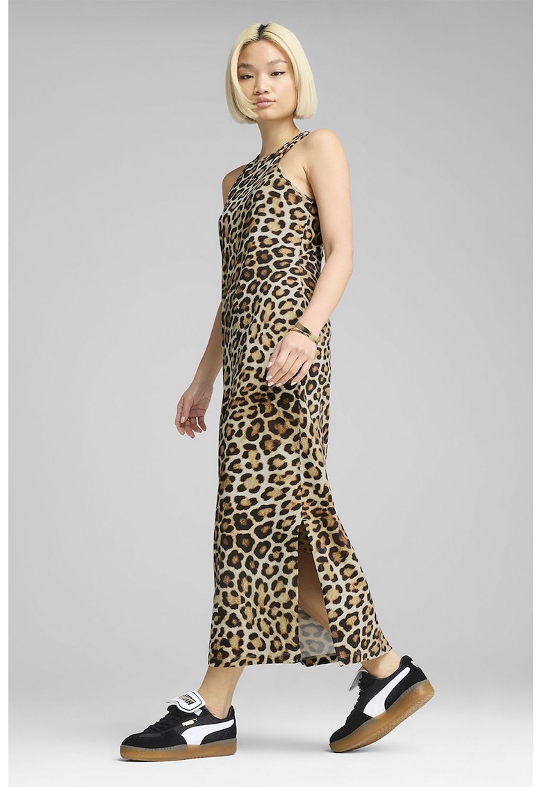 - bej deschis Stil: casual Material: bumbac Imprimeu: animal print Croiala: dreapta Lungime: lunga Decolteu: la baza gatului Lungime maneca: fara maneca Detalii: slit lateral