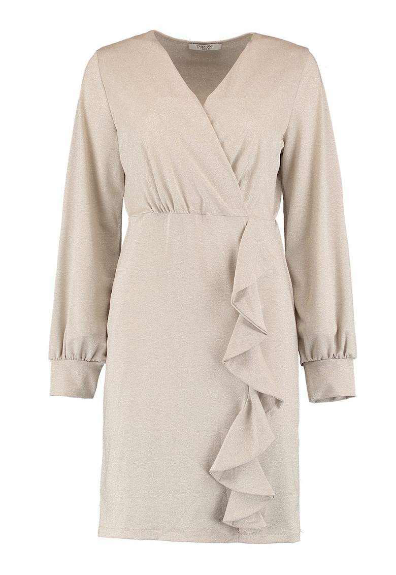 - lurex Imprimeu: uni Croiala: dreapta Lungime: scurta Decolteu: cache-coeur Maneci: cu mansete Lungime maneca: maneca lunga Detalii: volane