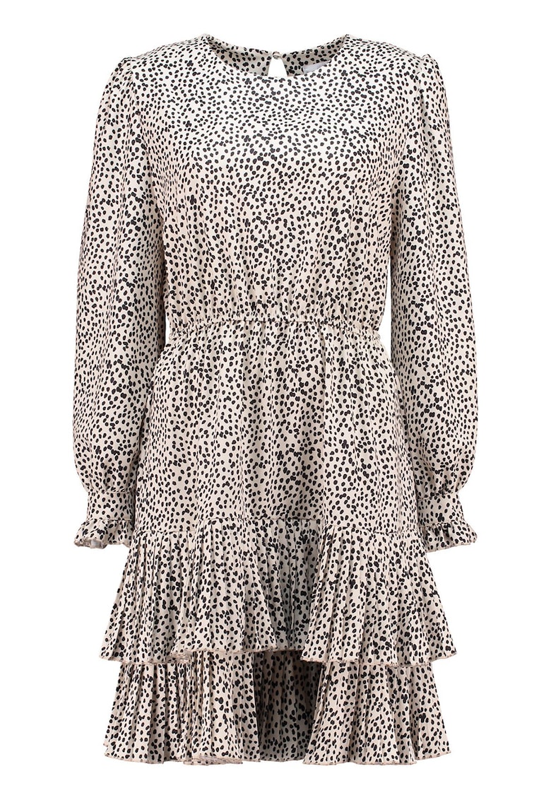 - alb murdar Stil: casual Material: poliester Imprimeu: buline Croiala: stratificata Lungime: scurta Decolteu: la baza gatului Lungime maneca: maneca lunga Detalii: nasture pe partea din spate a decolteului Compozitie Exterior: 100% poliester