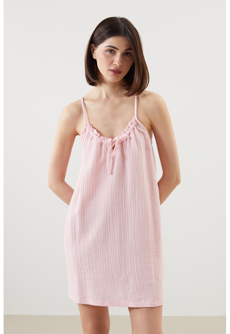 - bumbac Imprimeu: uni Croiala: lejer Lungime: scurta Decolteu: rotund Barete: ajustabile Lungime maneca: fara maneca Sistem inchidere: fara inchidere Compozitie Exterior: 66% bumbac