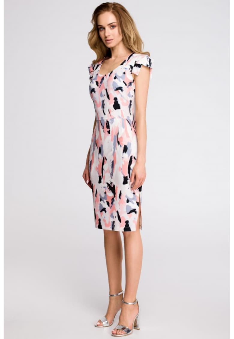 - elastan Imprimeu: floral Croiala: creion Lungime: midi Decolteu: barcuta Lungime maneca: fara maneca Detalii: produs in europa Compozitie Exterior: 95% poliester