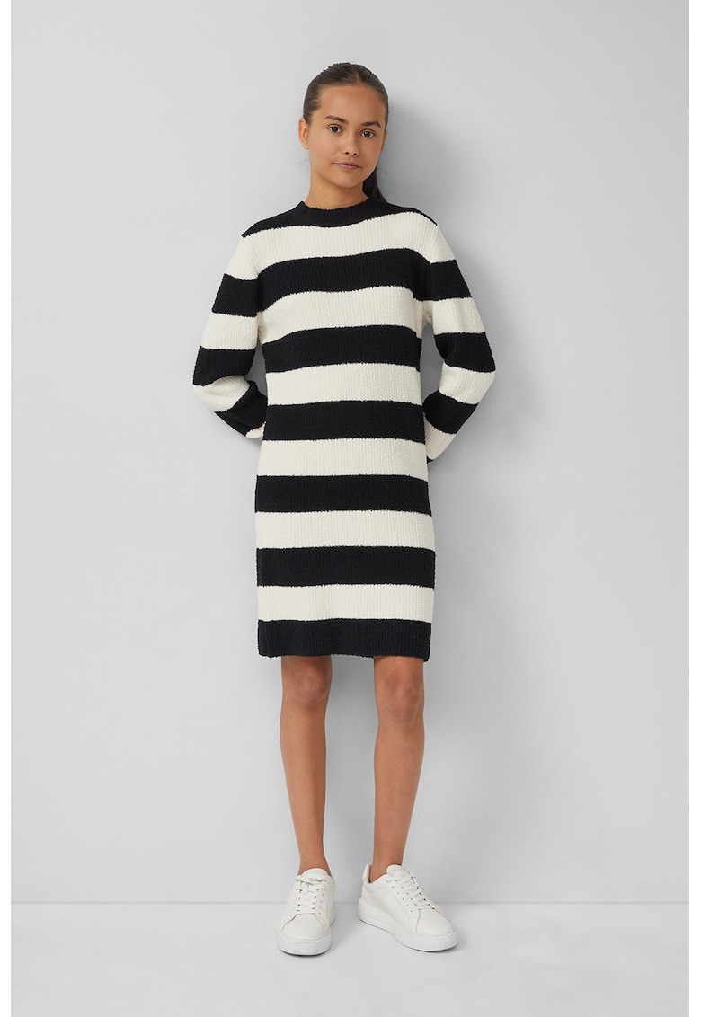 - negru Stil: casual Material: poliester Imprimeu: dungi Croiala: regular fit Lungime maneca: maneca lunga Stil decolteu: la baza gatului Detalii: aspect pufos Colectie: toamna