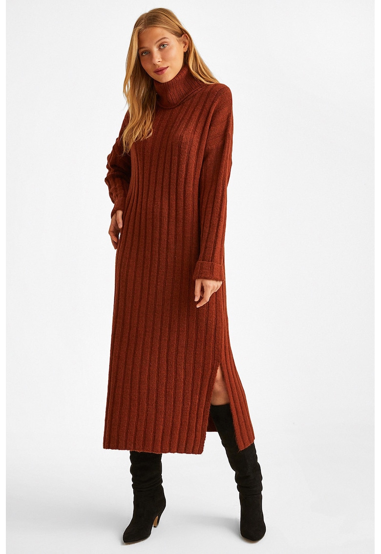 - acril Imprimeu: uni Croiala: lejer Lungime: midi Decolteu: guler inalt