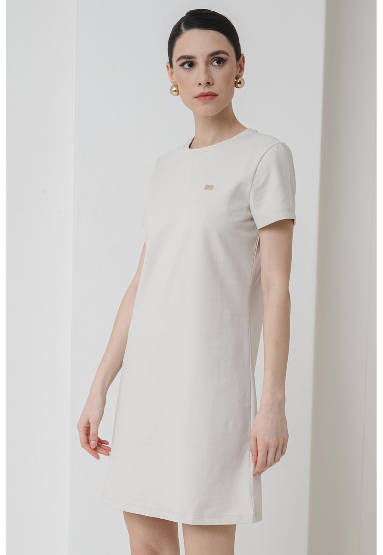 Caracteristici Culoare: alb murdar Stil: casual Material: bumbac Imprimeu: uni Croiala: dreapta Lungime: scurta Decolteu: rotund Lungime maneca: maneca scurta Detalii: logo Sistem inchidere: fara inchidere Compozitie Exterior: 90% bumbac
