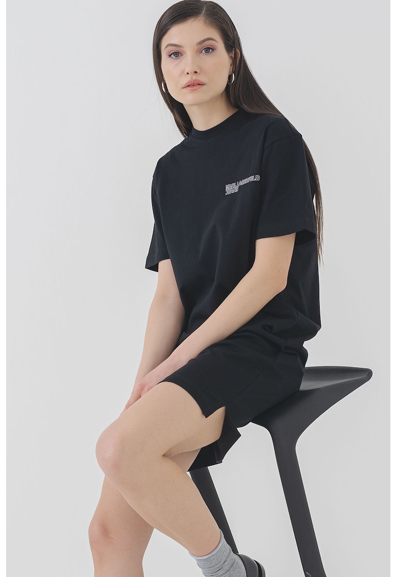 Caracteristici Culoare: negru Stil: casual Material: bumbac Imprimeu: logo Croiala: dreapta Lungime: scurta Decolteu: la baza gatului Lungime maneca: maneca scurta Sistem inchidere: fara inchidere Compozitie Exterior: 100% bumbac Info model Modelul poarta un produs de marimea S. Marimi model: 176 cm inaltime