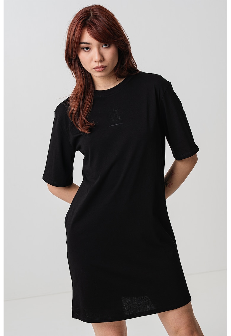 Caracteristici Culoare: negru Stil: casual Material: bumbac Imprimeu: logo Croiala: dreapta Lungime: scurta Decolteu: la baza gatului Lungime maneca: maneca medie Sistem inchidere: fara inchidere Compozitie Exterior: 100% bumbac Info model Modelul poarta un produs de marimea S. Marimi model: 173 cm inaltime