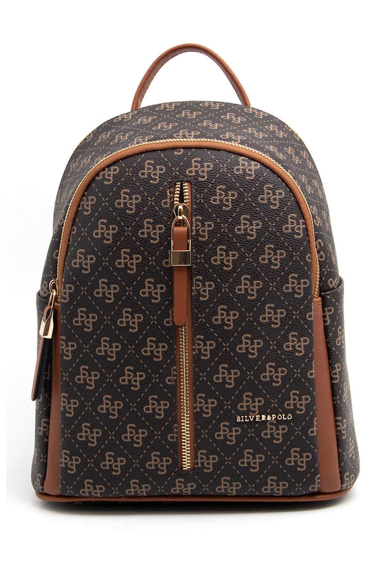 - maro Stil: casual Material: piele ecologica Imprimeu: cu model Buzunare: 2 buzunare exterioare cu fermoar