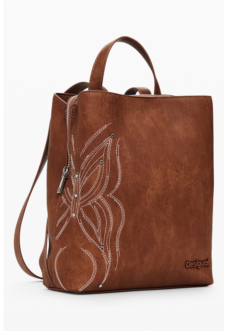 - pe partea din spate Maner: 1 fix Detalii: detaliu brodat Sistem inchidere: fermoar Compozitie Exterior: 100% poliuretan Captuseala: 100% poliester Dimensiuni Dimensiune (cm): 29.3x24.4x8.6