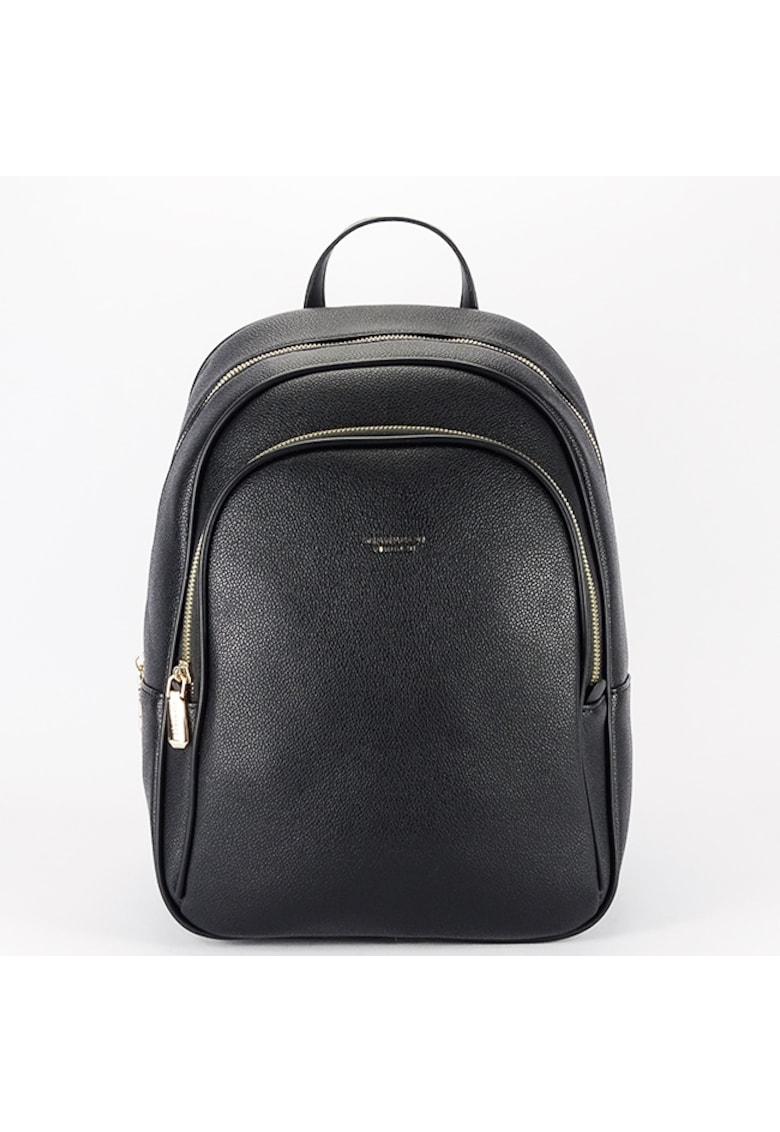 Caracteristici Culoare: negru Stil: casual Material: piele ecologica Imprimeu: uni Buzunare: 2 exterior cu fermoar