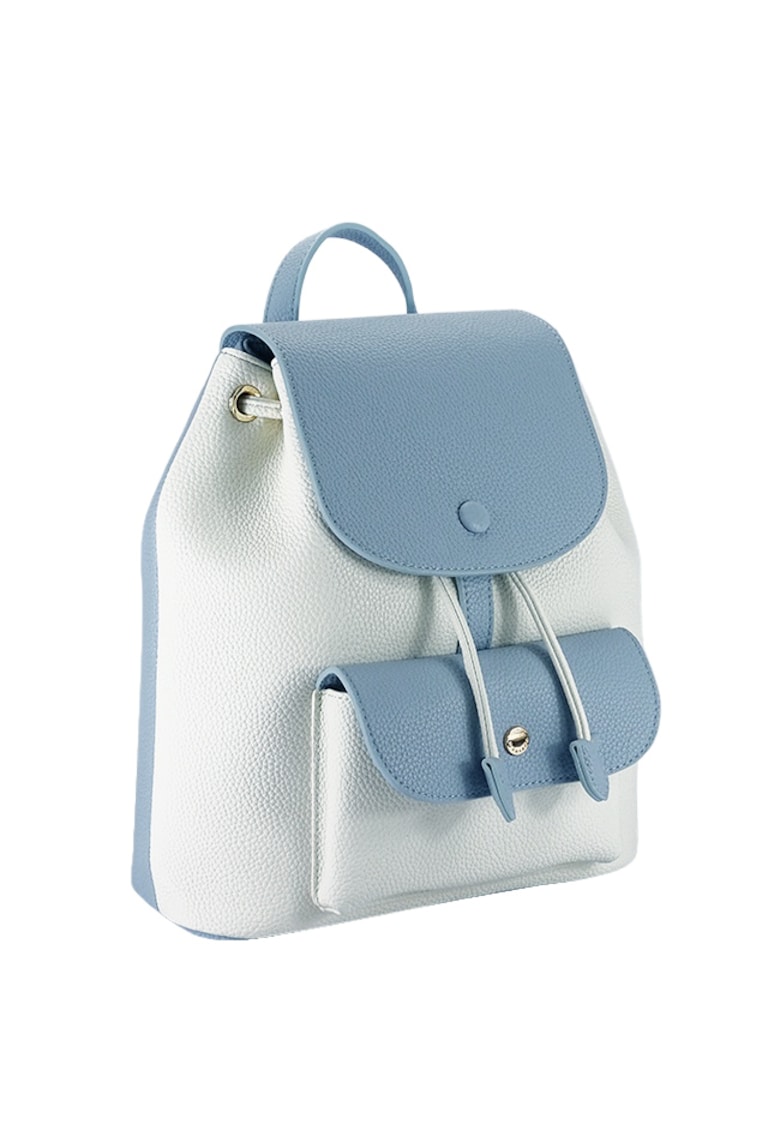 Caracteristici Culoare: albastru deschis Stil: casual Material: piele ecologica Imprimeu: uni Buzunare: 1 exterior cu fermoar