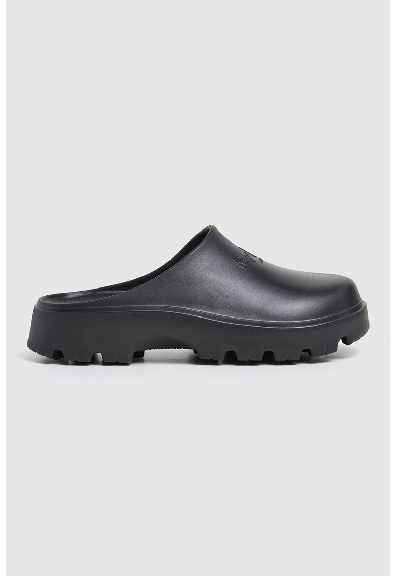 Caracteristici Tip produs: saboti Culoare: negru Material: sintetic Stil: casual Imprimeu: uni Varf: rotund Tip talpa: plata Detalii: talpa aderenta Compozitie Partea superioara: alte materiale Material interior: alte materiale Material talpa: alte materiale