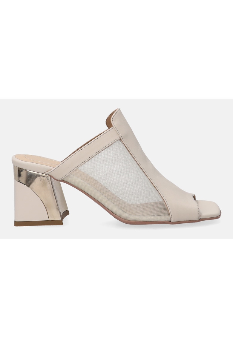 Caracteristici Tip produs: saboti Culoare: bej Material: piele naturala Stil: casual Imprimeu: uni Varf: patrat Tip toc: masiv Compozitie Partea superioara: piele