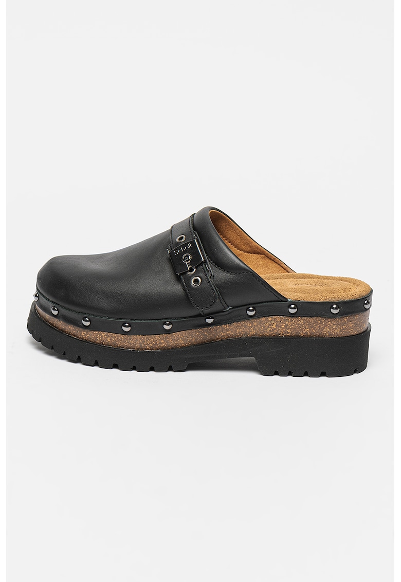 Caracteristici Tip produs: saboti Culoare: negru Material: piele naturala Stil: casual Imprimeu: uni Varf: rotund Tip talpa: wedge Compozitie Partea superioara: piele Material interior: alte materiale