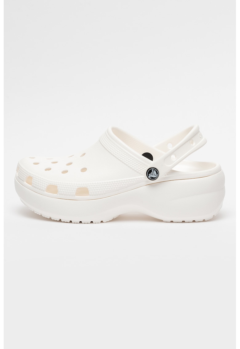 Caracteristici Tip produs: papuci Culoare: alb Material: cauciuc Stil: de plaja Varf: rotund Tip talpa: wedge Detalii: aspect perforat Tehnologie: croslite™ Compozitie Partea superioara: alte materiale Material interior: alte materiale Material talpa: alte materiale Dimensiuni Platforma fata: 2.5 cm