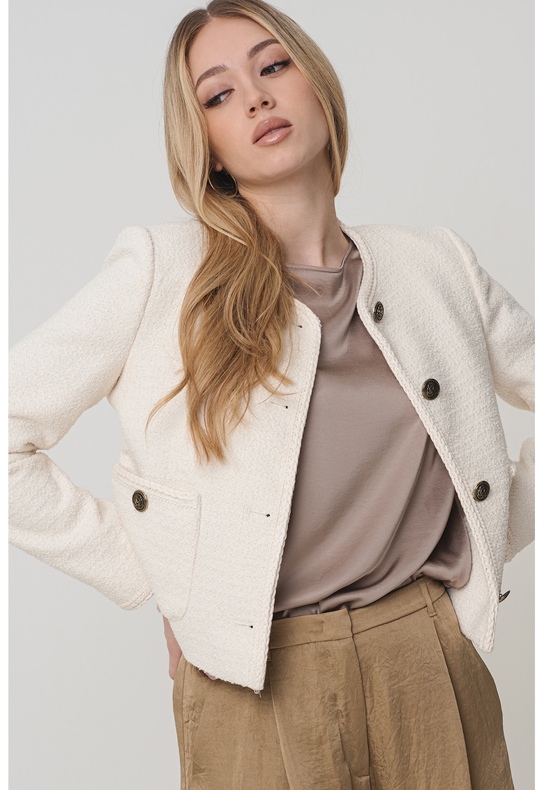 - viscoza Imprimeu: uni Lungime maneca: maneca lunga Buzunare: 2 aplicate Detalii: detalii cu aspect tesut Sistem inchidere: nasturi Compozitie Exterior: 52% poliester