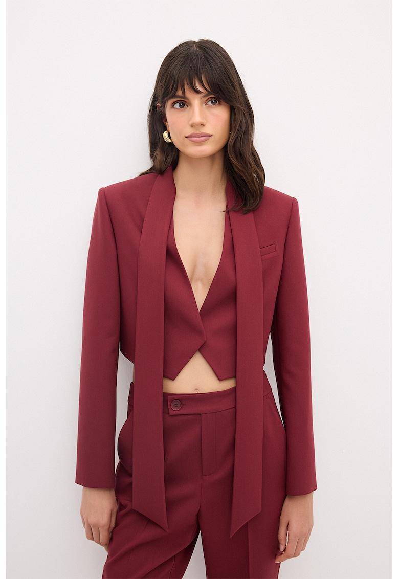 Caracteristici Culoare: rosu inchis Stil: elegant Croiala: crop Material: poliester