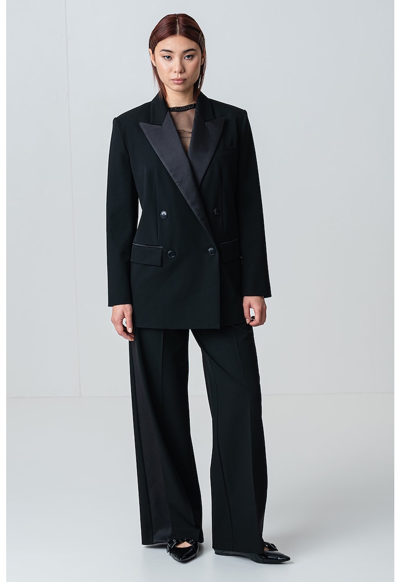 - elastan Imprimeu: uni Guler: cu revere Lungime maneca: maneca lunga Sistem inchidere: nasturi Compozitie Exterior: 64% poliester -32% viscoza -4% elastan Info model Modelul poarta un produs de marimea S/38 IT. Marimi model: 173 cm inaltime