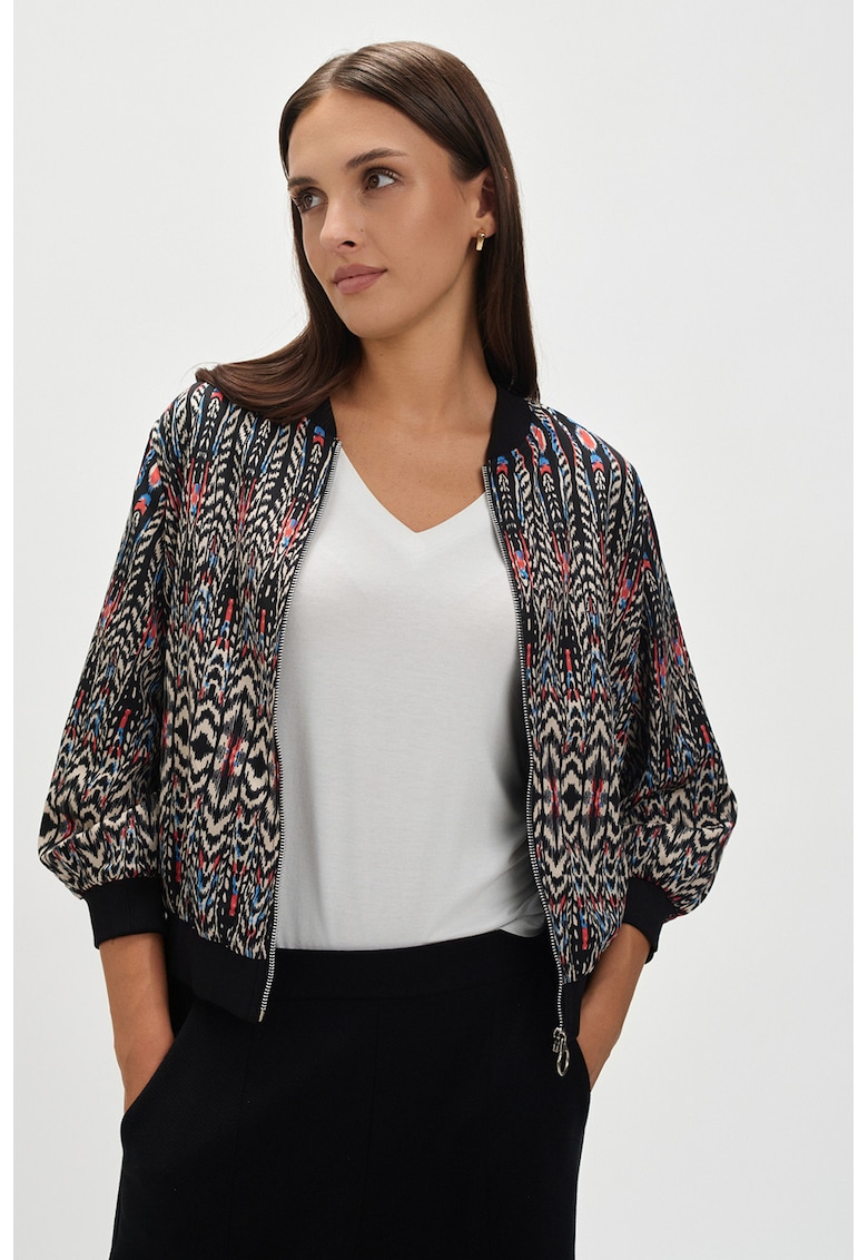 - alb murdar Imprimeu: abstract Material: poliester Croiala: regular fit Gluga: fara gluga Lungime maneca: maneca trei sferturi Sistem inchidere: fermoar Compozitie Exterior: 100% poliester
