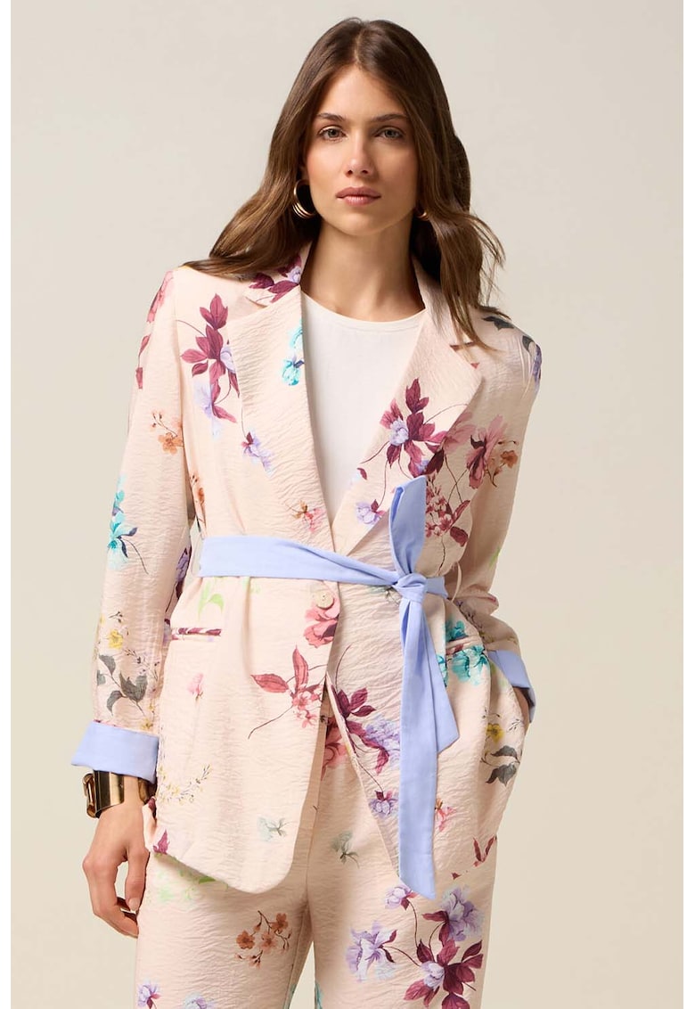 - poliamida Imprimeu: floral Guler: cu revere decupate Lungime maneca: maneca lunga Sistem inchidere: nasturi