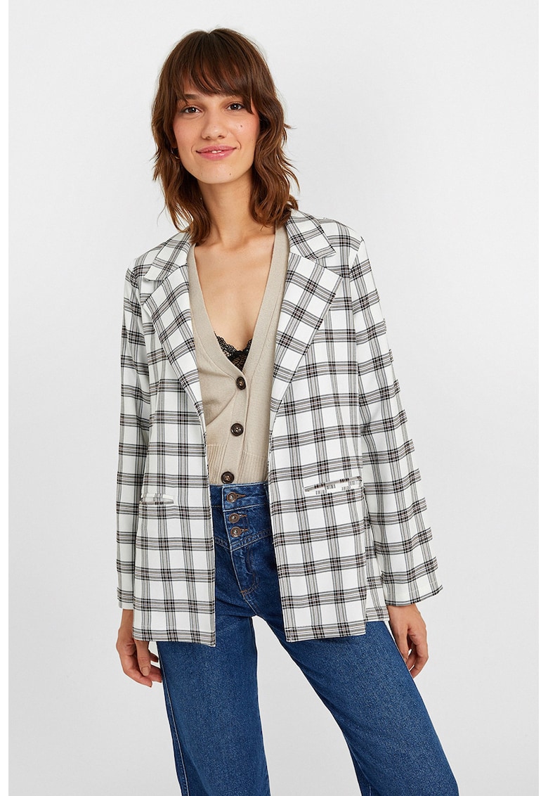 - alb optic Stil: casual Croiala: regular fit Material: sintetic Imprimeu: carouri Guler: cu revere Lungime maneca: maneca lunga Sistem inchidere: nasturi Compozitie Exterior: 78% poliester