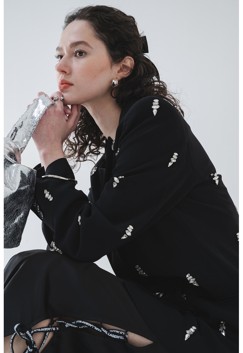 Caracteristici Culoare: negru Stil: casual Croiala: regular fit Material: poliester Imprimeu: uni Lungime maneca: maneca lunga Detalii: aplicatie cu strasuri Sistem inchidere: nasturi Compozitie Exterior: 96% poliester