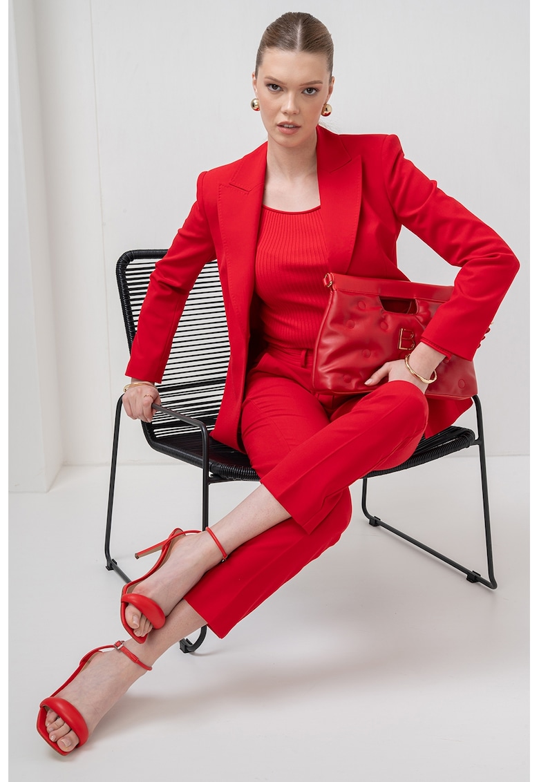 Caracteristici Culoare: rosu Stil: elegant Croiala: regular fit Material: sintetic Imprimeu: uni Lungime maneca: maneca lunga Buzunare: 2 cu refilet Sistem inchidere: nasturi Compozitie Exterior: 68% poliester