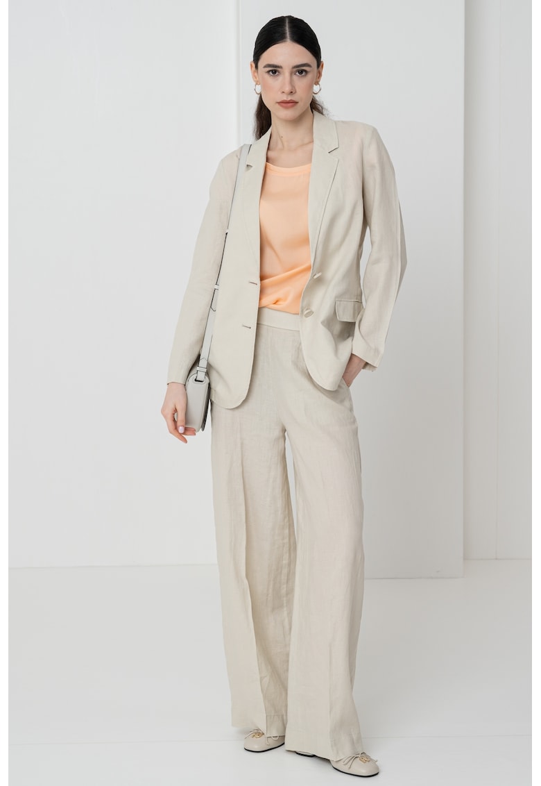 Caracteristici Culoare: bej deschis Stil: casual Croiala: regular fit Material: in Imprimeu: uni Guler: cu revere decupate Lungime maneca: maneca lunga Buzunare: 2 cu clapa Sistem inchidere: nasturi Compozitie Exterior: 100% in Info model Modelul poarta un produs de marimea S/40 IT. Marimi model: 177 cm inaltime