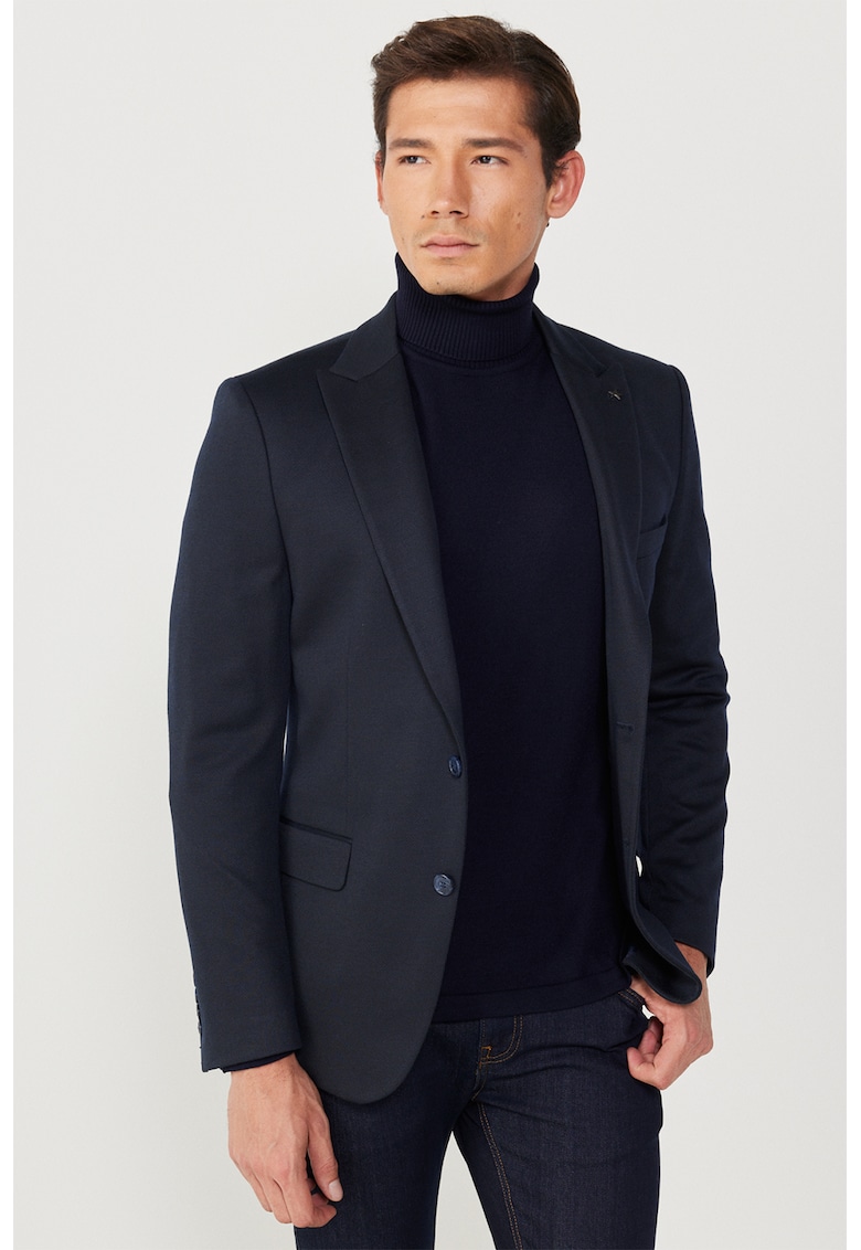- elastan Stil: casual Croiala: slim fit Guler: cu revere decupate Lungime maneca: maneca lunga Buzunare: 2 cu clapa