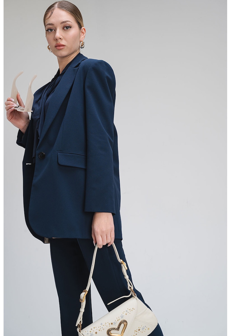 Caracteristici Culoare: bleumarin Stil: elegant Croiala: lejer Material: sintetic Imprimeu: uni Lungime maneca: maneca lunga Sistem inchidere: nasturi Compozitie Exterior: 100% poliester Captuseala: 62% acetat