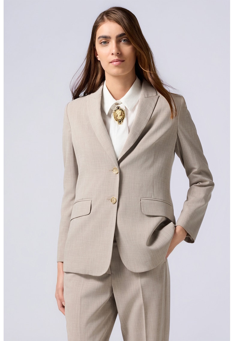 - viscoza Imprimeu: uni Guler: cu revere decupate Lungime maneca: maneca lunga Buzunare: 2 Sistem inchidere: nasturi Compozitie Exterior: 53% poliester
