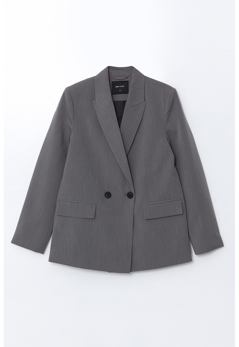 Caracteristici Culoare: gri inchis Stil: elegant Croiala: regular fit Material: poliester Imprimeu: uni Guler: cu revere decupate Lungime maneca: maneca lunga Buzunare: 2 Sistem inchidere: nasturi Compozitie Exterior: 79% poliester
