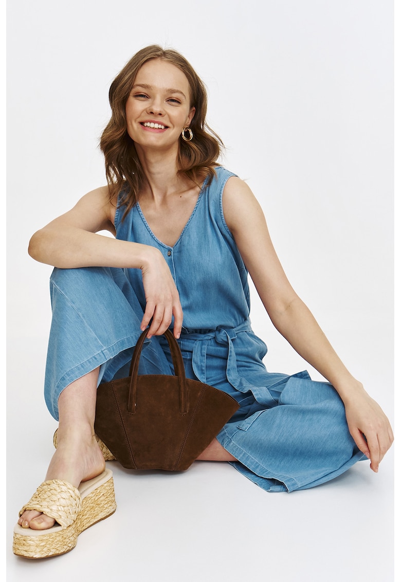 - viscoza Lungime maneca: fara maneca Lungime pantaloni: lungi Imprimeu: uni Sistem inchidere: nasturi Detalii: cordon in talie Compozitie Exterior: 60% bumbac
