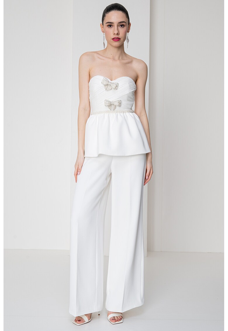 - crem Croiala: evazat Stil: elegant Material: poliester Lungime maneca: fara maneca Lungime pantaloni: lungi Imprimeu: uni Compozitie Exterior: 100% poliester Info model Modelul poarta un produs de marimea S/6 UK. Marimi model: 177 cm inaltime