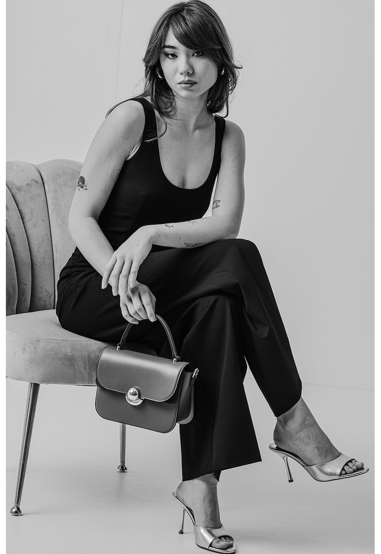 - 4 elastan Info model Modelul poarta un produs de marimea S/38 IT. Marimi model: 173 cm inaltime