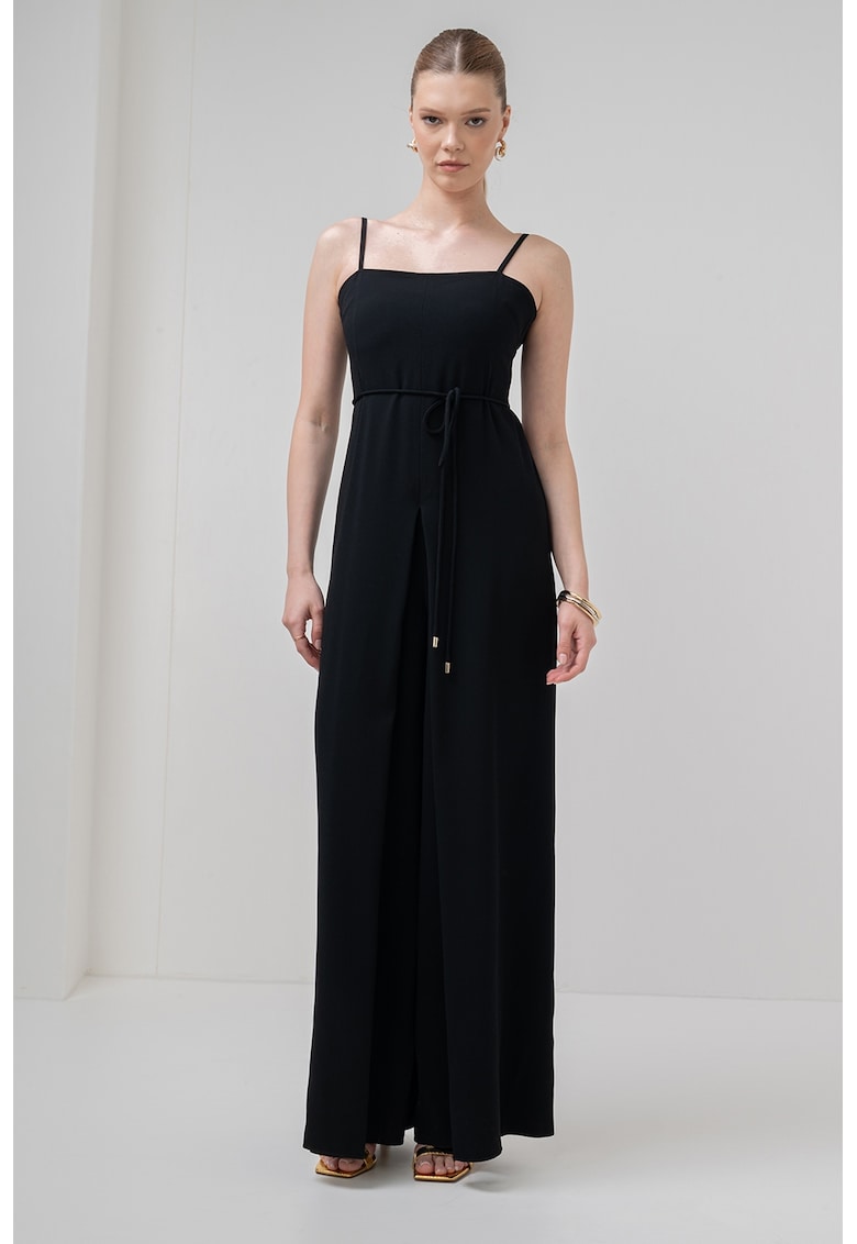 Caracteristici generale Culoare: negru Croiala: dreapta Stil: casual Material: fibre sintetice Lungime maneca: fara maneca Lungime pantaloni: lungi Imprimeu: uni Compozitie Exterior: 82% triacetat